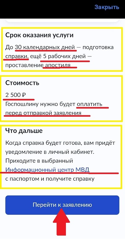 На следующем шаге появится подробная информация о сроках оказания услуги ⏱️,